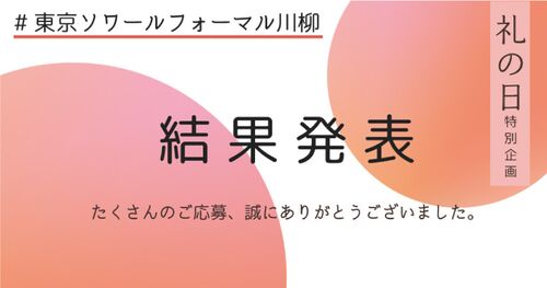東京ソワールさんが「礼の日」の特別企画として募集していた「東京ソワールフォーマル川柳」で優秀賞をいただきました。最優秀賞が1名でそのあとの優秀賞3名のうちの一つ。川柳ってトイレ川柳に数回挑戦したぐらいで、ほとんどやったことがなかったのでこ…